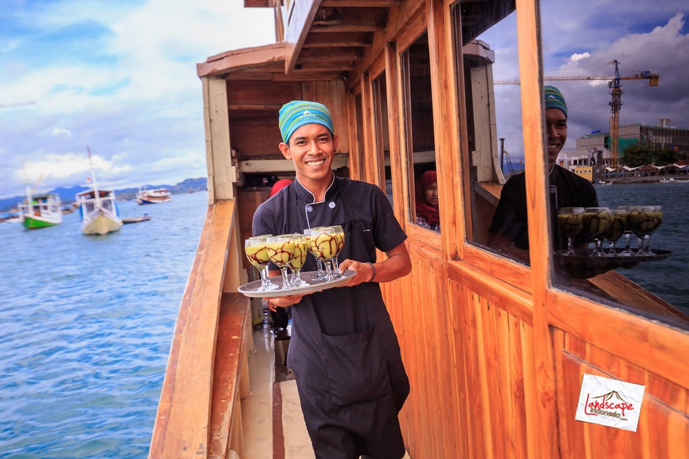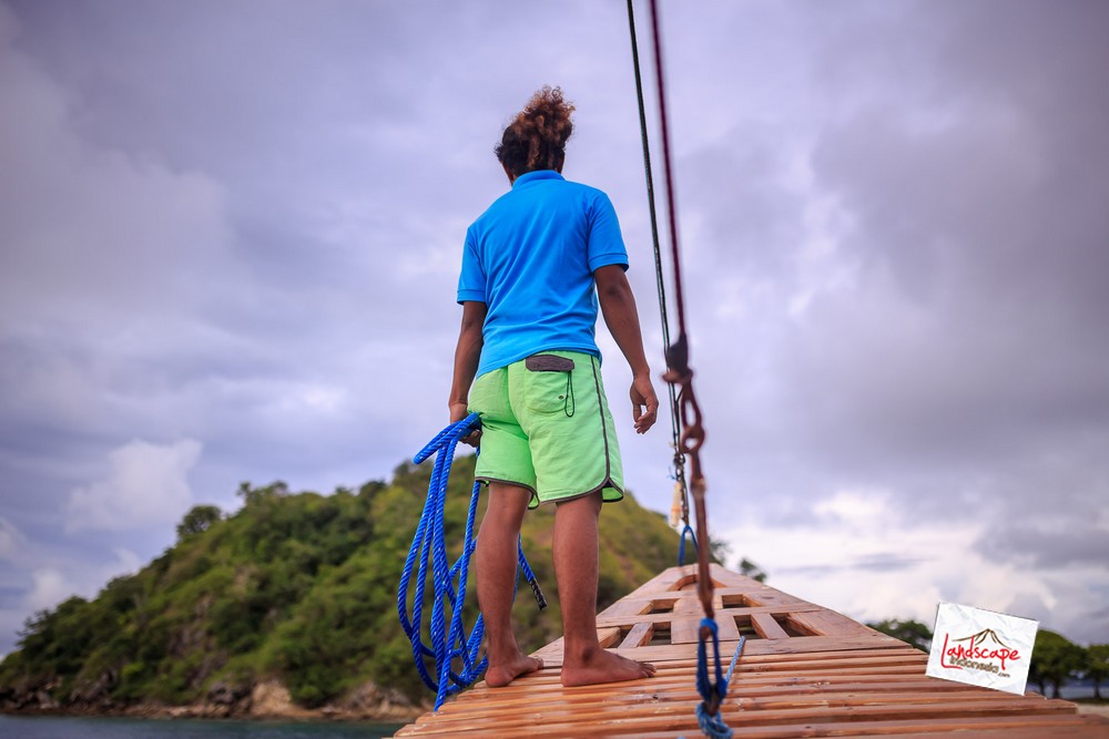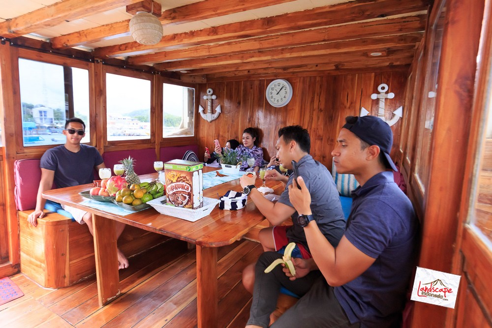 “Hati-hati, licin”, awak kapal mengingatkan kami ketika satu persatu mulai berpindah dari speedboat ke perahu Lalunia. “Sepatu di taruh di box ya, supaya kapal tetap bersih.”