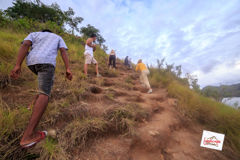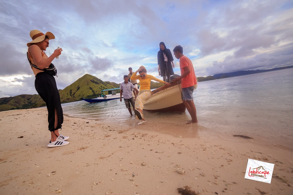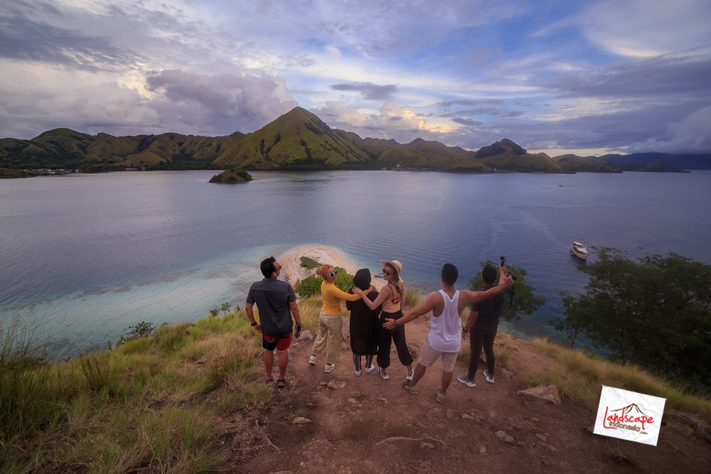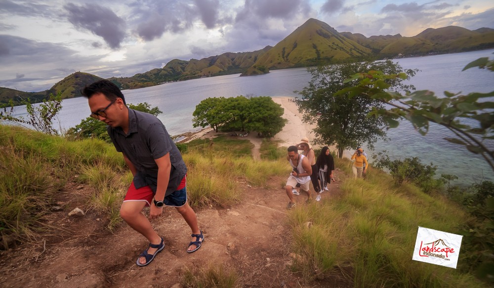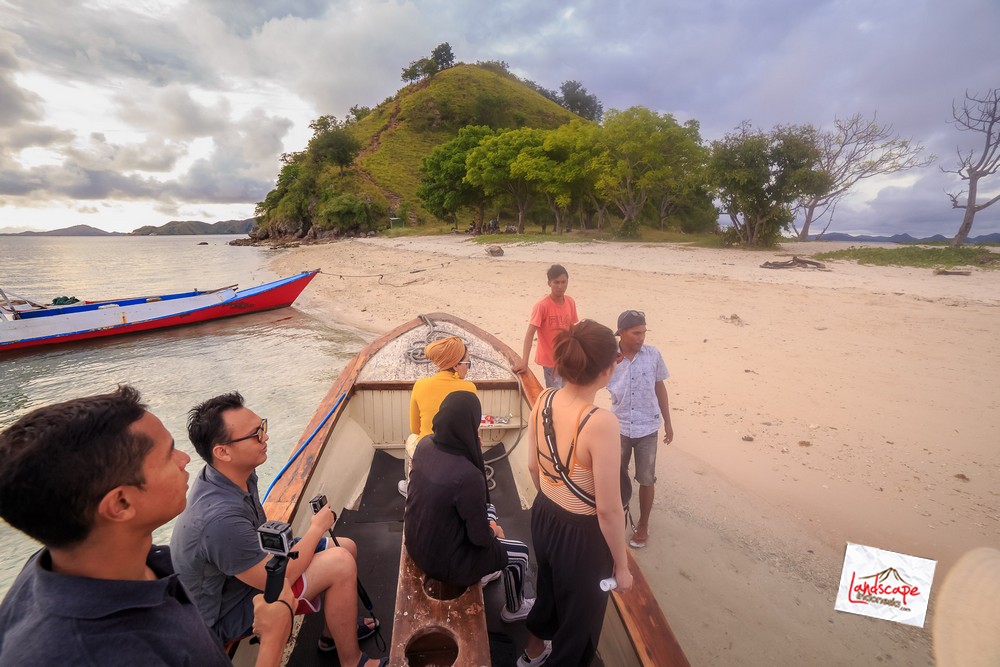 Selepas diving, kapal menuju ke pulau Kelor. “Biasa di atas bukit menonton matahari terbenam”. Ketika tiba di pinggir pantai, tidak terlalu banyak pengunjung lain. Mungkin karena memang cuaca kali ini mendung sehingga orang enggan untuk menunggu matahari terbenam.