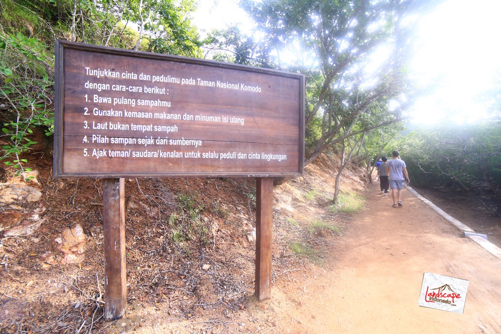 Jalur trekking di pulau Rinca ini tidak terlalu banyak jalan menanjak, datar dan cukup rimbun di awal perjalanan.