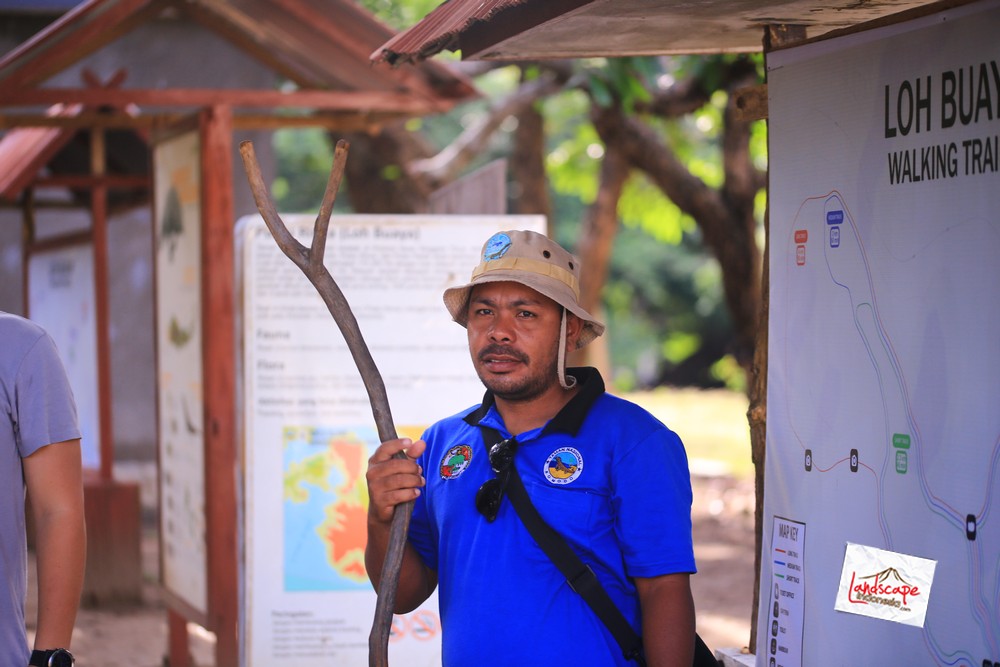 Ranger sudah mengenal lokasi dan juga mengetahui tindak tanduk komodo. Plus nya lagi, mereka sudah terbiasa mengambil foto untuk para tamu yang datang berpose dengan komodo.