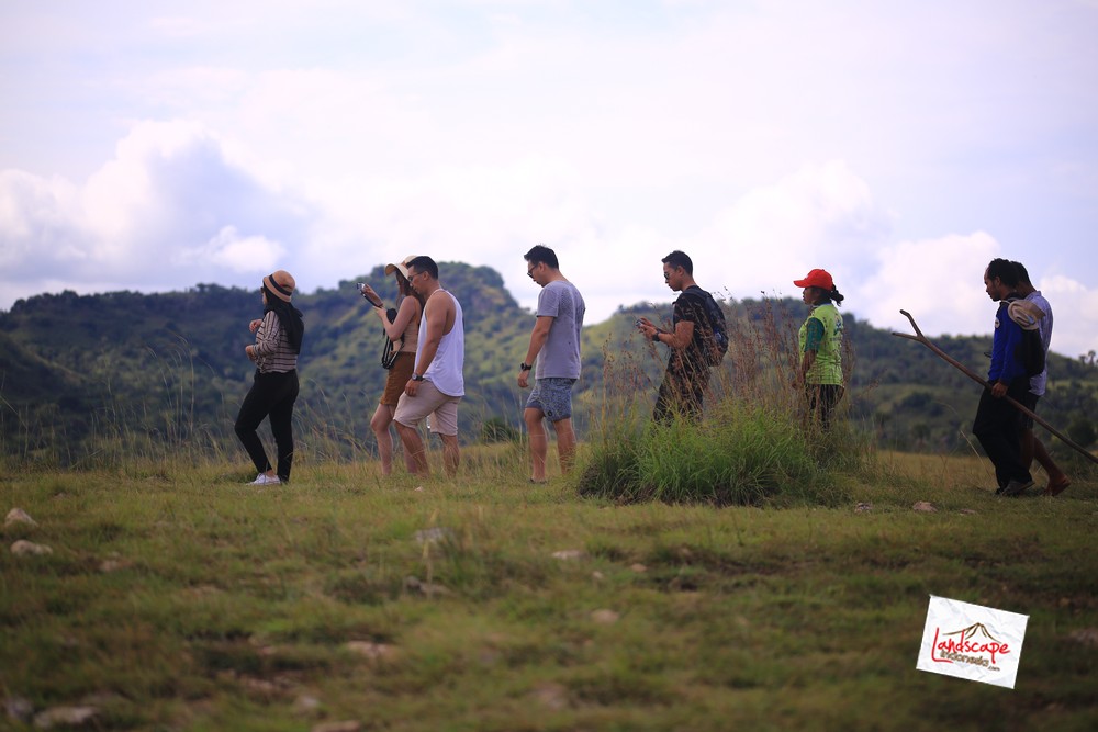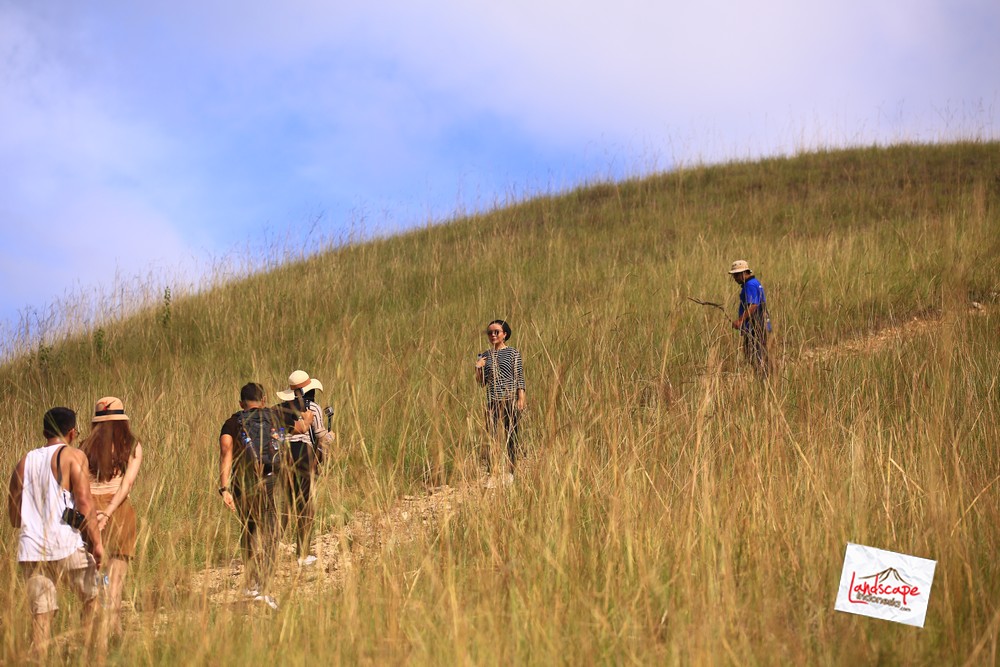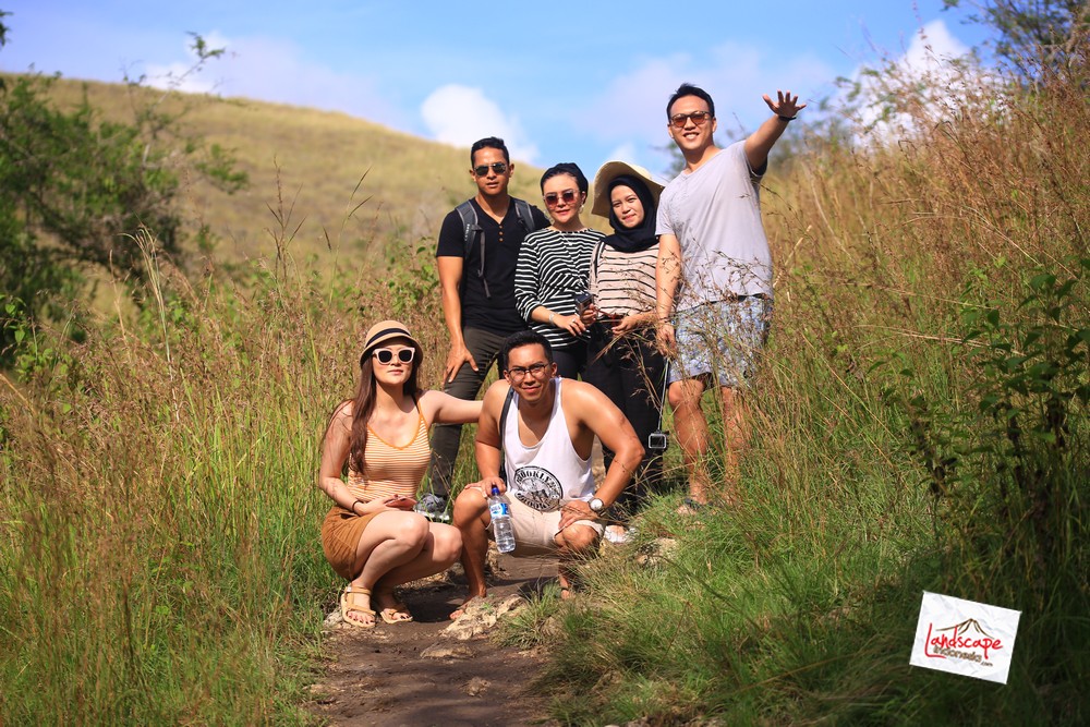 Selepas itu, jalan mulai menanjak menuju ke bukit. Di kanan kiri kami melewati padang rumput. Pemandangan bukit berbukit dan padang rumput di belakang kami seakan membuat kami harus banyak beristirahat untuk sekedar menikmati pemandangan. Halasan hahaha.
