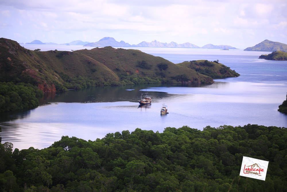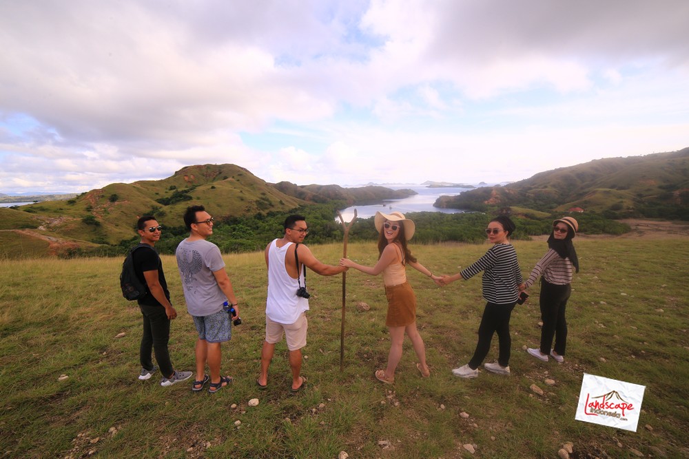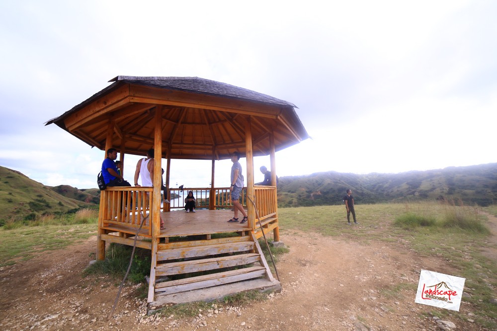 Begitu tiba di atas bukit, sekarang sudah berdiri pondokan buat beristirahat, pemandangan membentang luas sekeliling pulau Rinca.