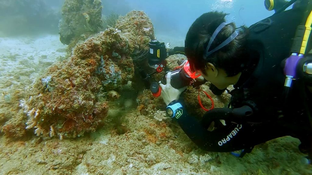 Kamera yang dibawa mbak Riri adalah olympus TG-5 yang memang banyak digunakan diver yang mengemari macro karena punya fasilitas super macro. Awalnya mbak Riri berniat memasang wet lens wide angle tapi ternyata kalau menggunakan bawaan casing olympus TG-5 tidak bisa digabung dengan kabel fiber optik untuk strobe.