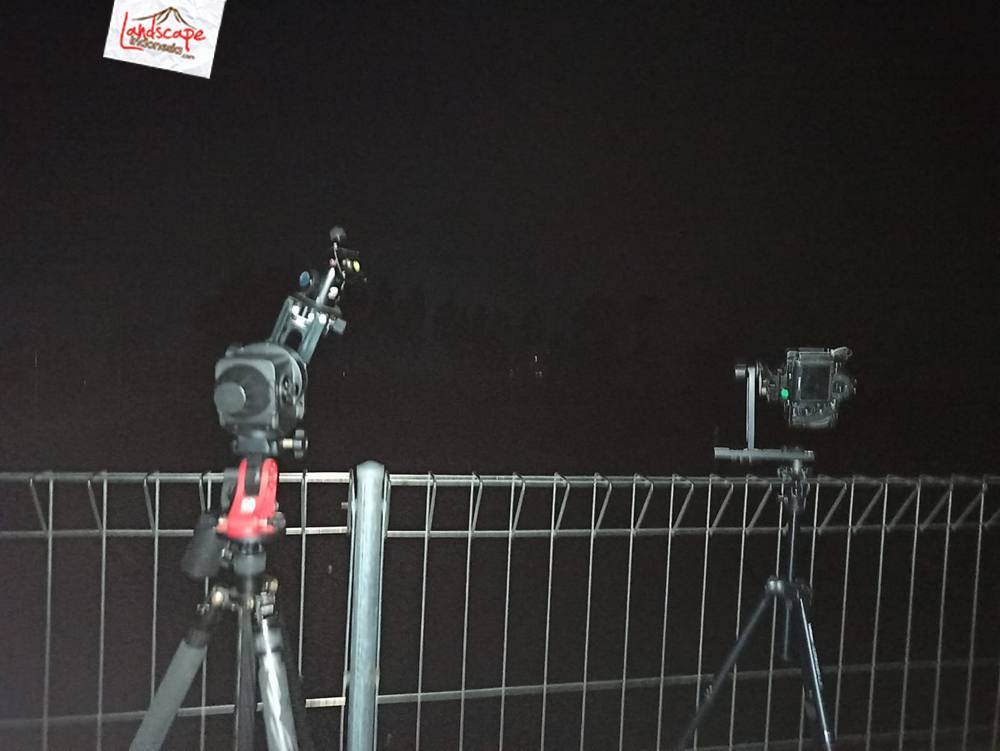Begitu sampai di Embung Manajar, kabut tipis sudah menutupi seluruh pandangan. Gunung Merapi yang harusnya nampak jelas di depan hanya terlihat bagian punggungan, dengan lampu – lampu kampung di bagian bawahnya. Selain itu hanya putih menutupi sekitar. Sambil menunggu kabut hilang, kami menyusuri sekitar embung. Di sekliling embung ternyata dipagari, jadi untuk memotret pantulan gunung merapi dan milky way bakalan sulit. Belum lagi permukaan air yang agak surut dan berwarna kehijauan. Tripod saya pasang di bagian yang menghadap ke Merapi, jadi begitu langit terbuka bisa langsung pasang kamera.